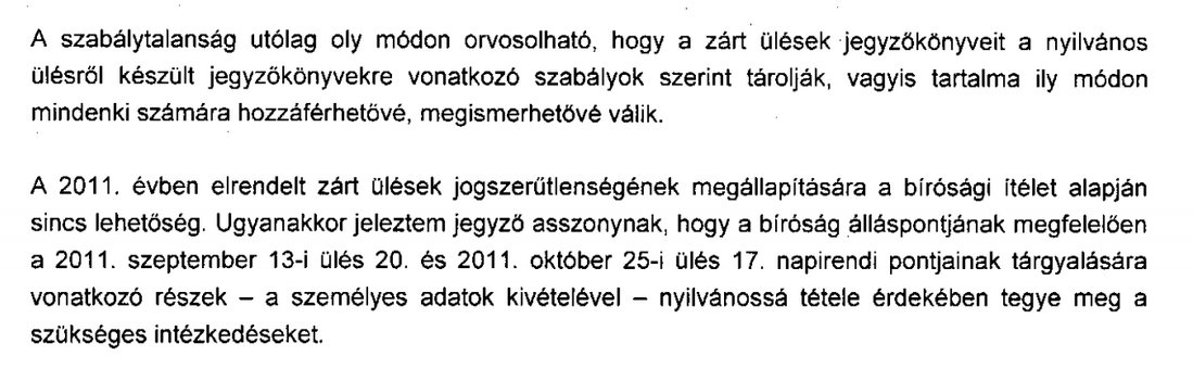 A törvényességi felügyeleti szerv jelezte, hogy a jegyző asszony - a személyes adatok kivételével - tegye mindenki számára hozzáférhetővé a korábban zárt ülések jegyzőkönyveinek vonatkozó részét.